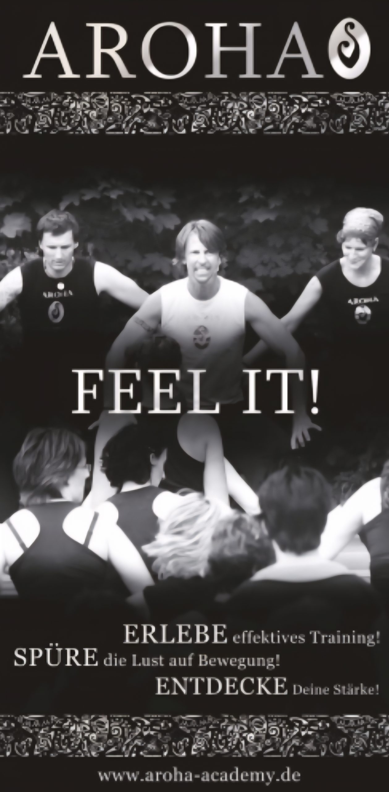 AROHA heißt übersetzt aus der Sprache der Maori „Liebe“. Ein effektives Ganzkörpertraining. Die Bewegungen sind inspiriert vom HAKA (sog. Kriegstanz der Maori), KUNG FU und TAIJI. AROHA baut Streß ab und macht sehr viel Spaß. Erlebe effektives Training! Spüre die Lust auf Bewegung und entdecke deine Stärke.